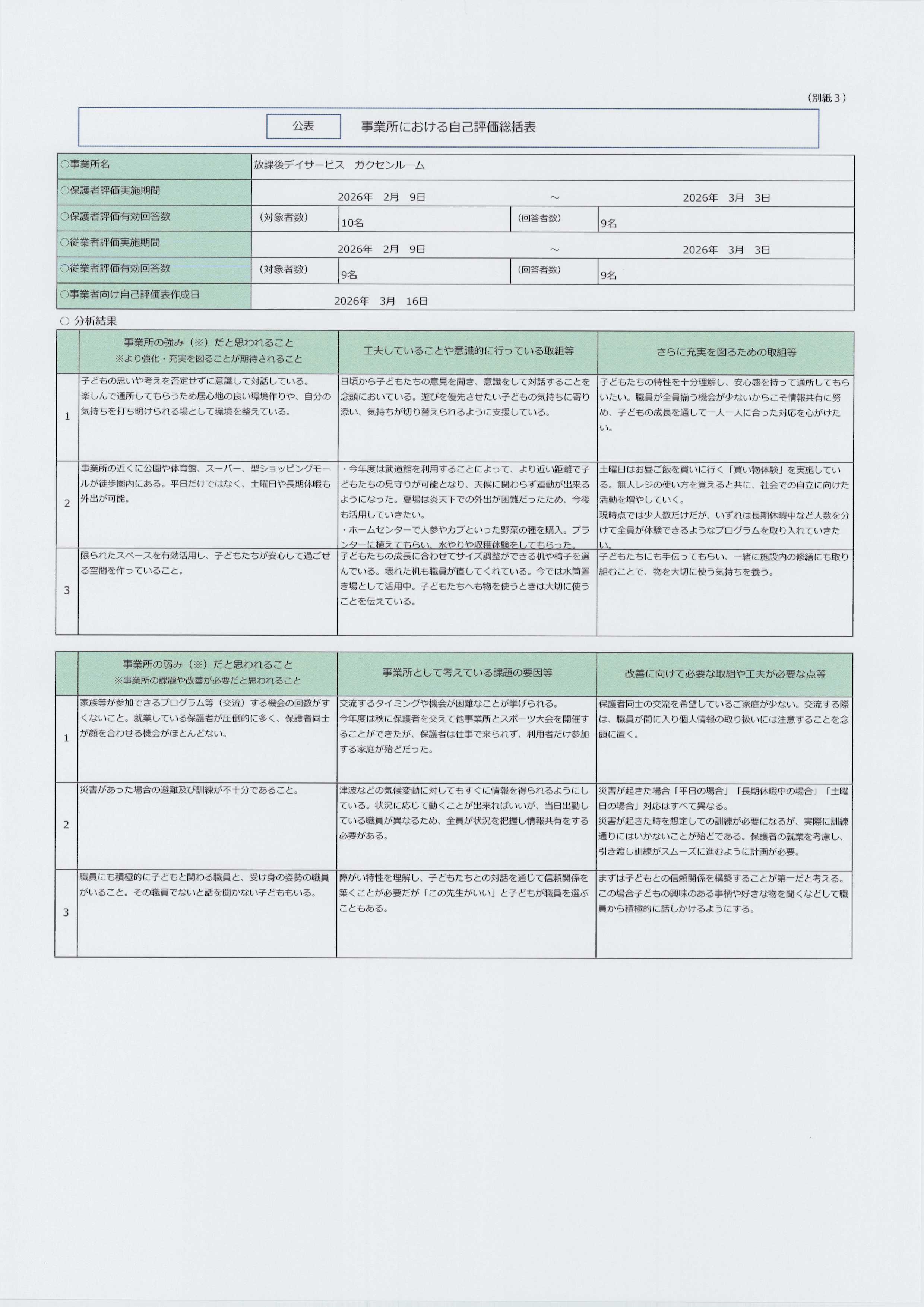 令和7年度 自己評価総括表