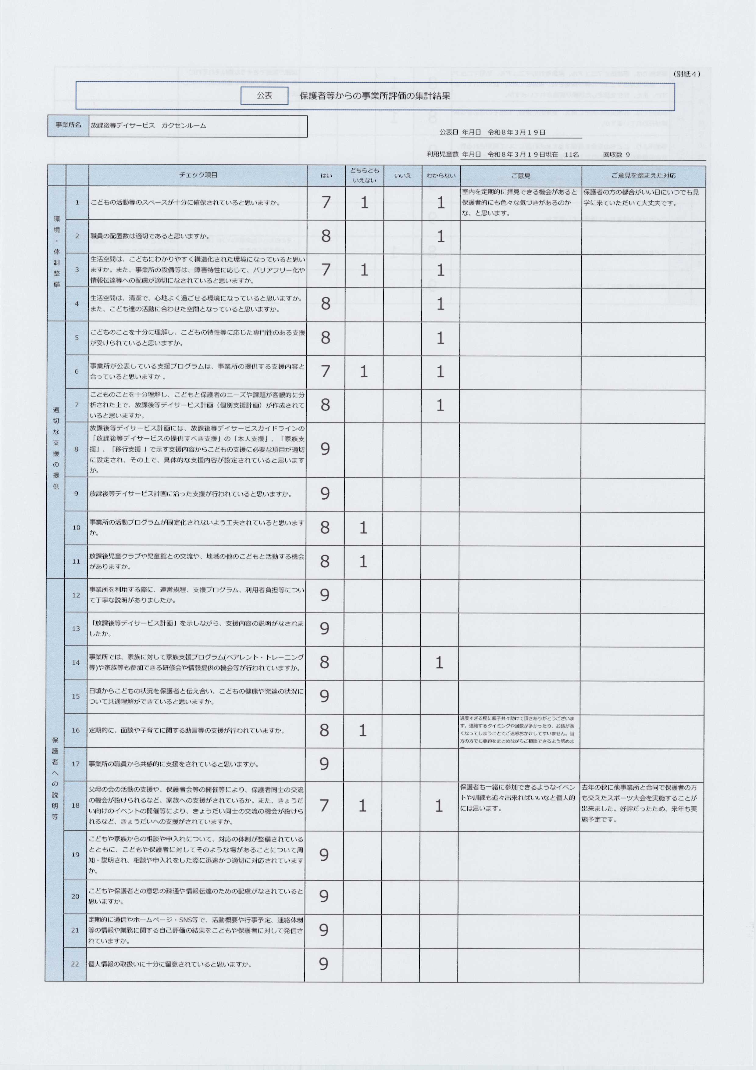 保護者評価表